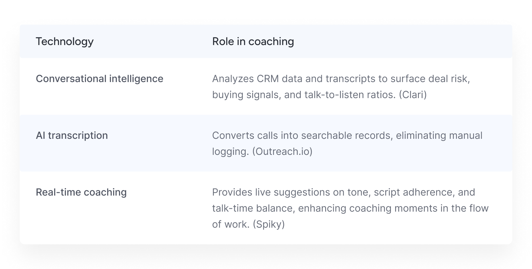 - Tools & technologies for AI sales coaching