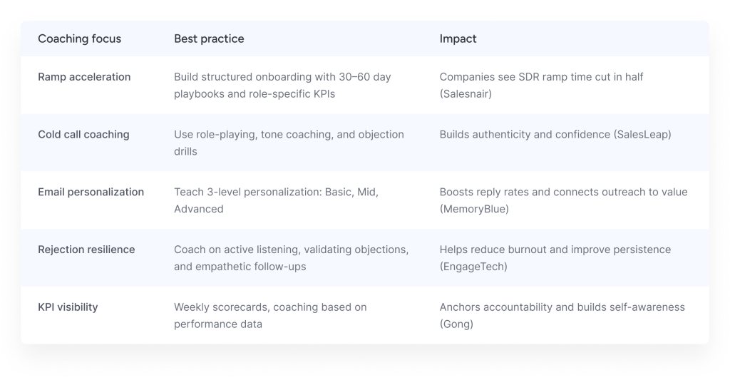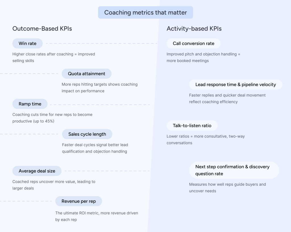 By blending traditional coaching techniques with AI-powered insights, teams can boost performance without sacrificing personalization. Role-based strategies, tailored frameworks, and measurable KPIs ensure that coaching meets the needs of every persona, whether it’s ramping a new SDR or elevating a front-line manager.
